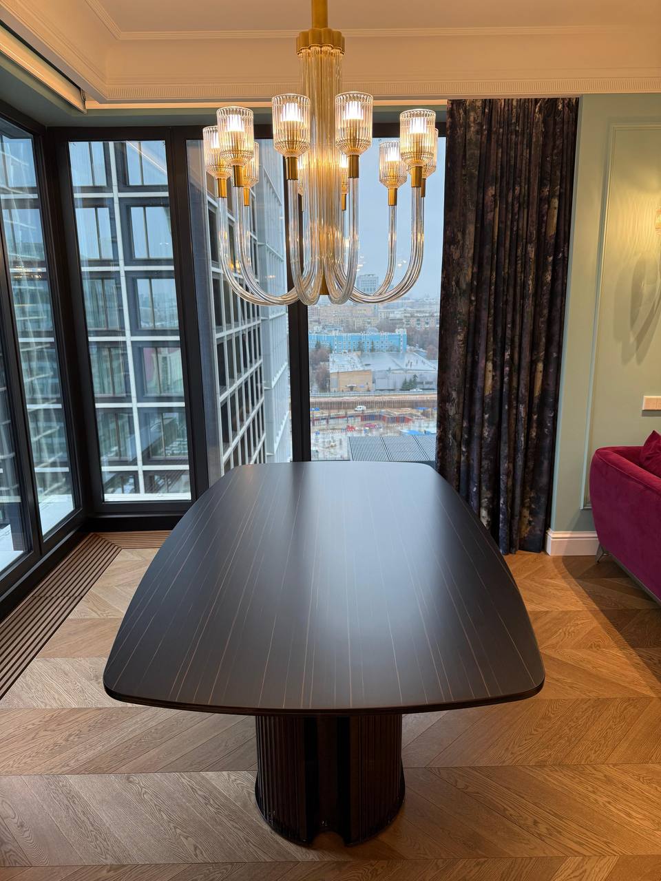 В данном проекте стол получил аккуратный матовый финиш, который подчеркнул натуральную текстуру шпона и сделал поверхность более устойчивой к ежедневной эксплуатации. Визуально мебель сохранила свою эстетику, а функционально стала значительно практичнее.