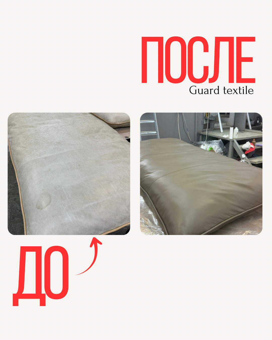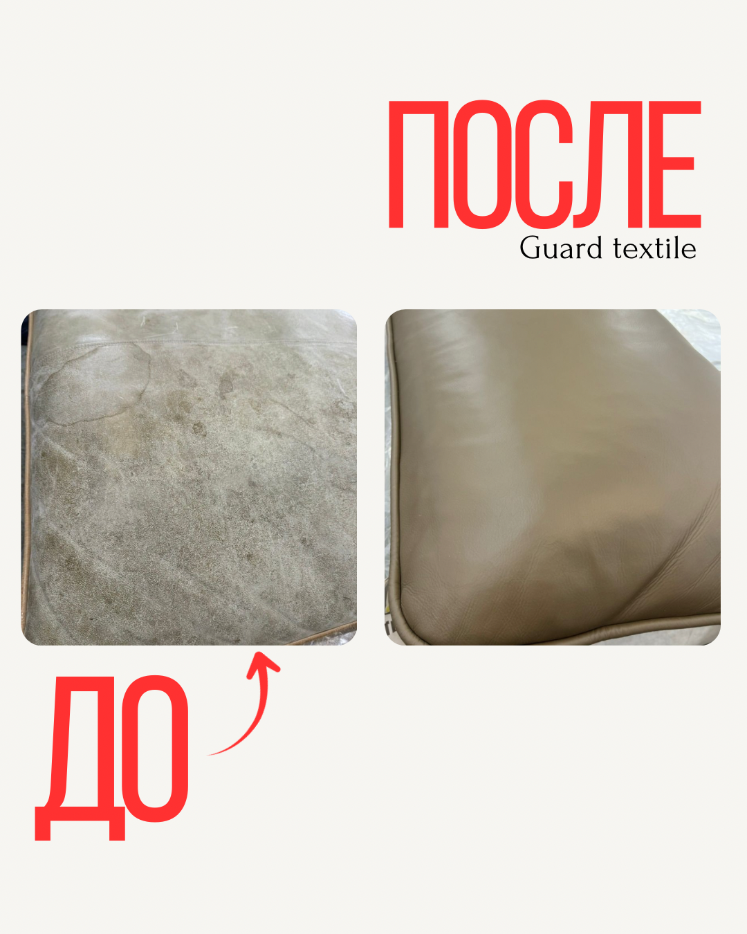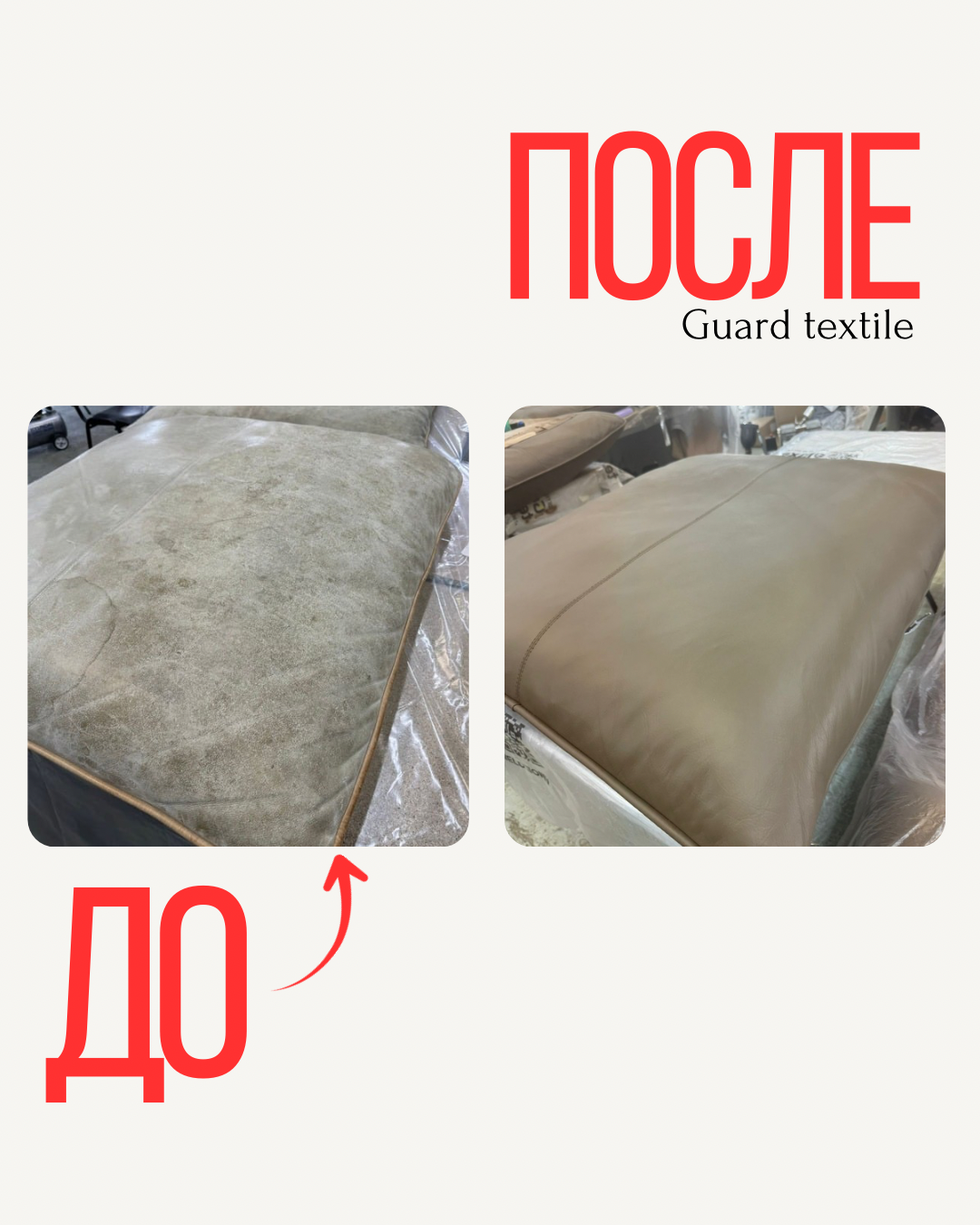 После завершения работ кожаные подушки приобрели равномерный насыщенный цвет, структура кожи сохранилась, микротрещины и потертости полностью исчезли. По tactile ощущениям поверхность стала мягче и эластичнее.