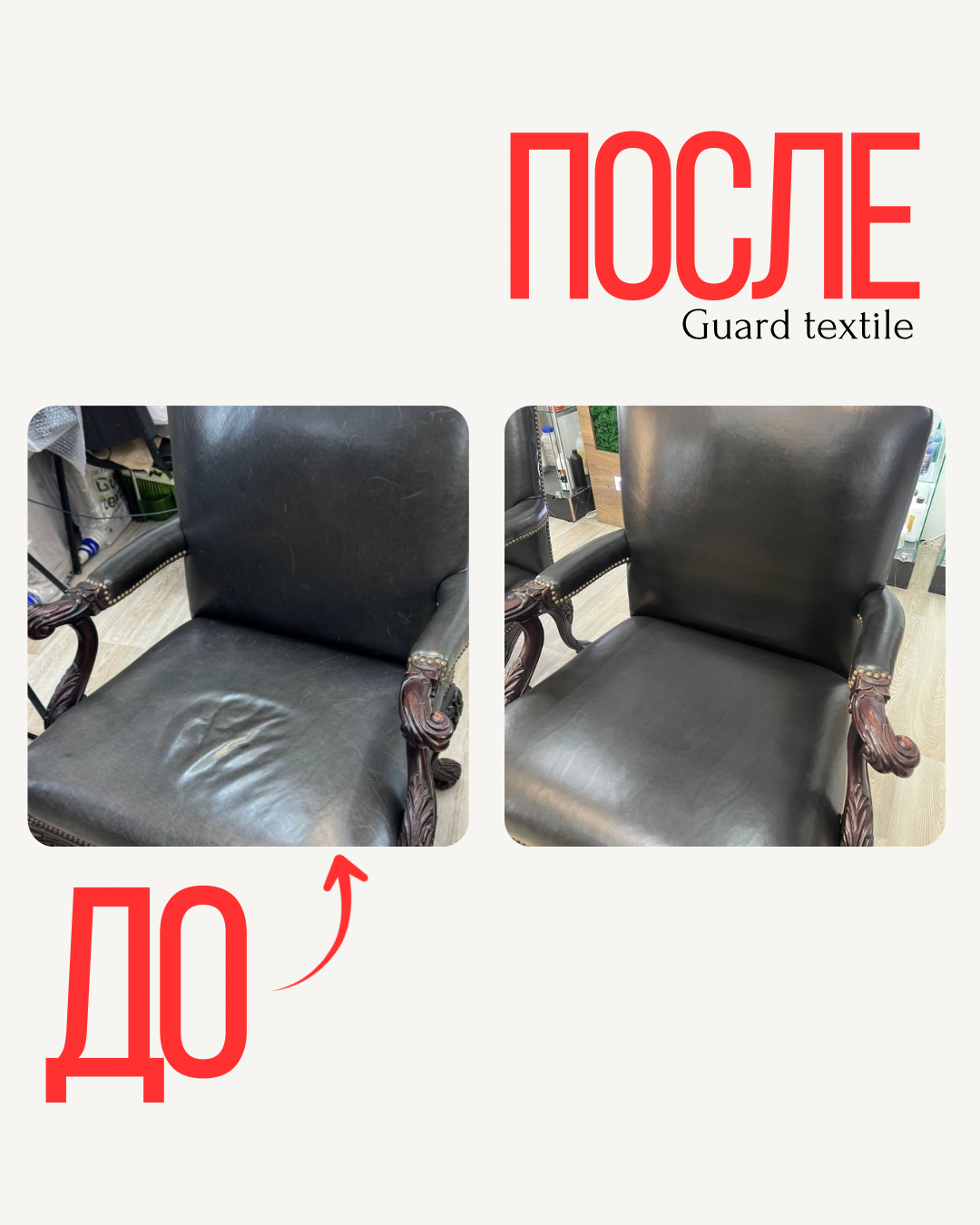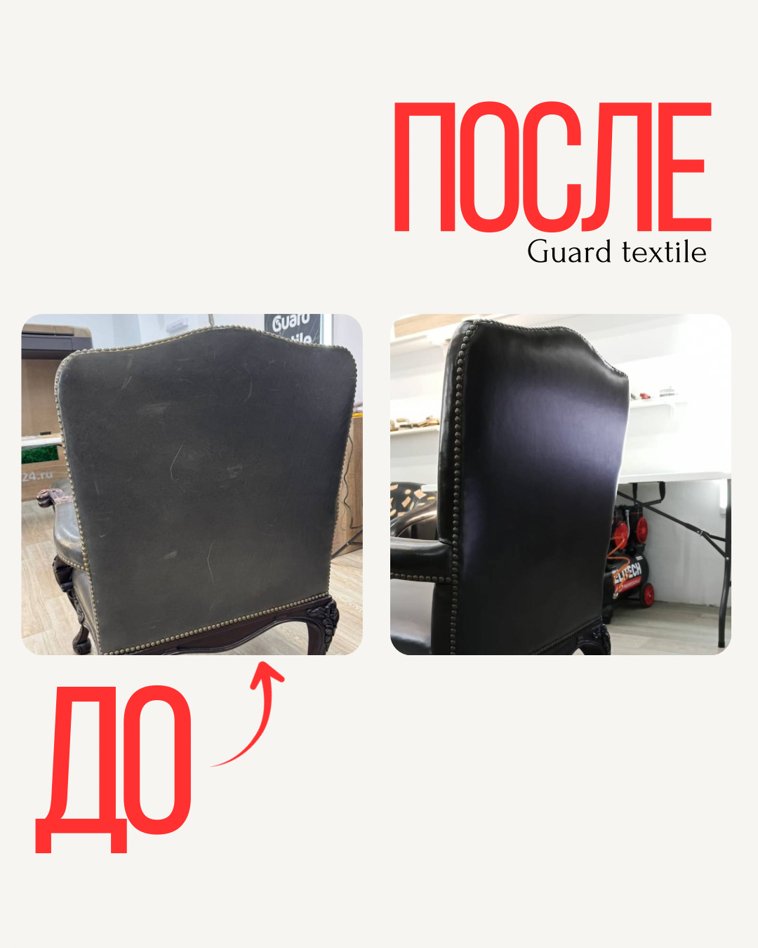 На креслах были заметны царапины, участки выцветания и потеря пигмента. Мы провели деликатное тонирование — точечное и равномерное. Это позволило: