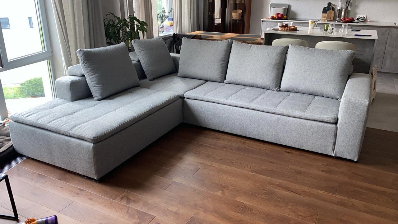 - Перетяжка требует демонтажа, транспортировки, либо приезда мастера, что может быть сложно и дорого, особенно для крупных модульных диванов.